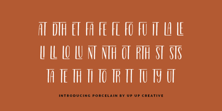 Porcelain comes with more than 430 glyphs and includes OpenType features like stylistic sets, multilingual support (including multiple currency symbols), and discretionary ligatures.